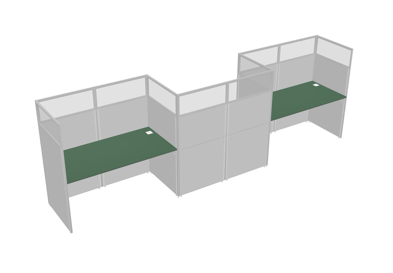 Green Rectangular Cubicle Workstations For 3 - Zigzag Formation