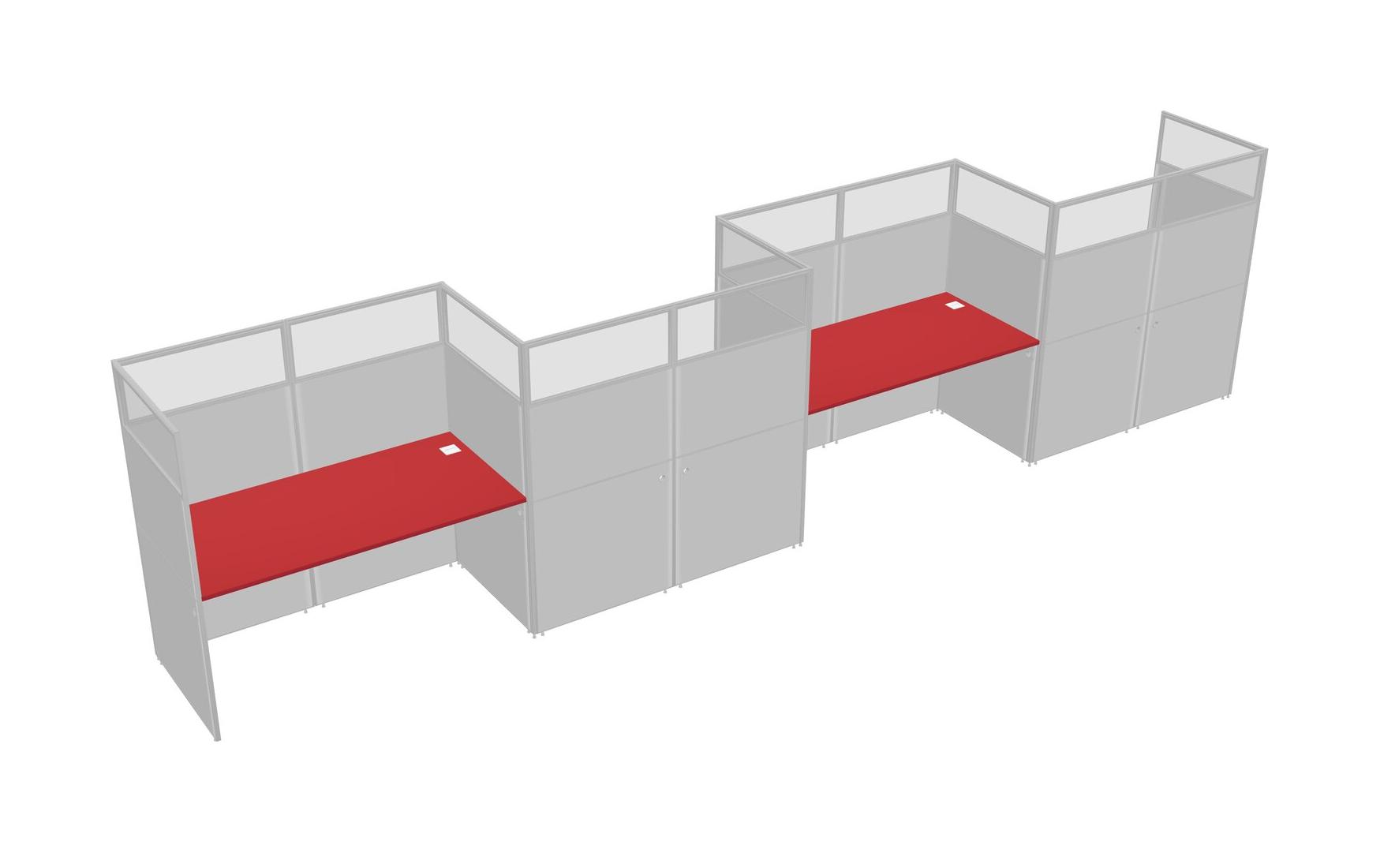 Prism Red Rectangular Cubicle Workstations For 4 - Zigzag Formation
