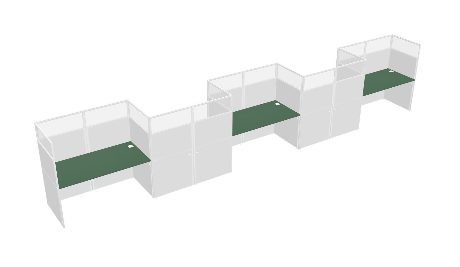 Green Rectangular Cubicle Workstations For 5 - Zigzag Formation