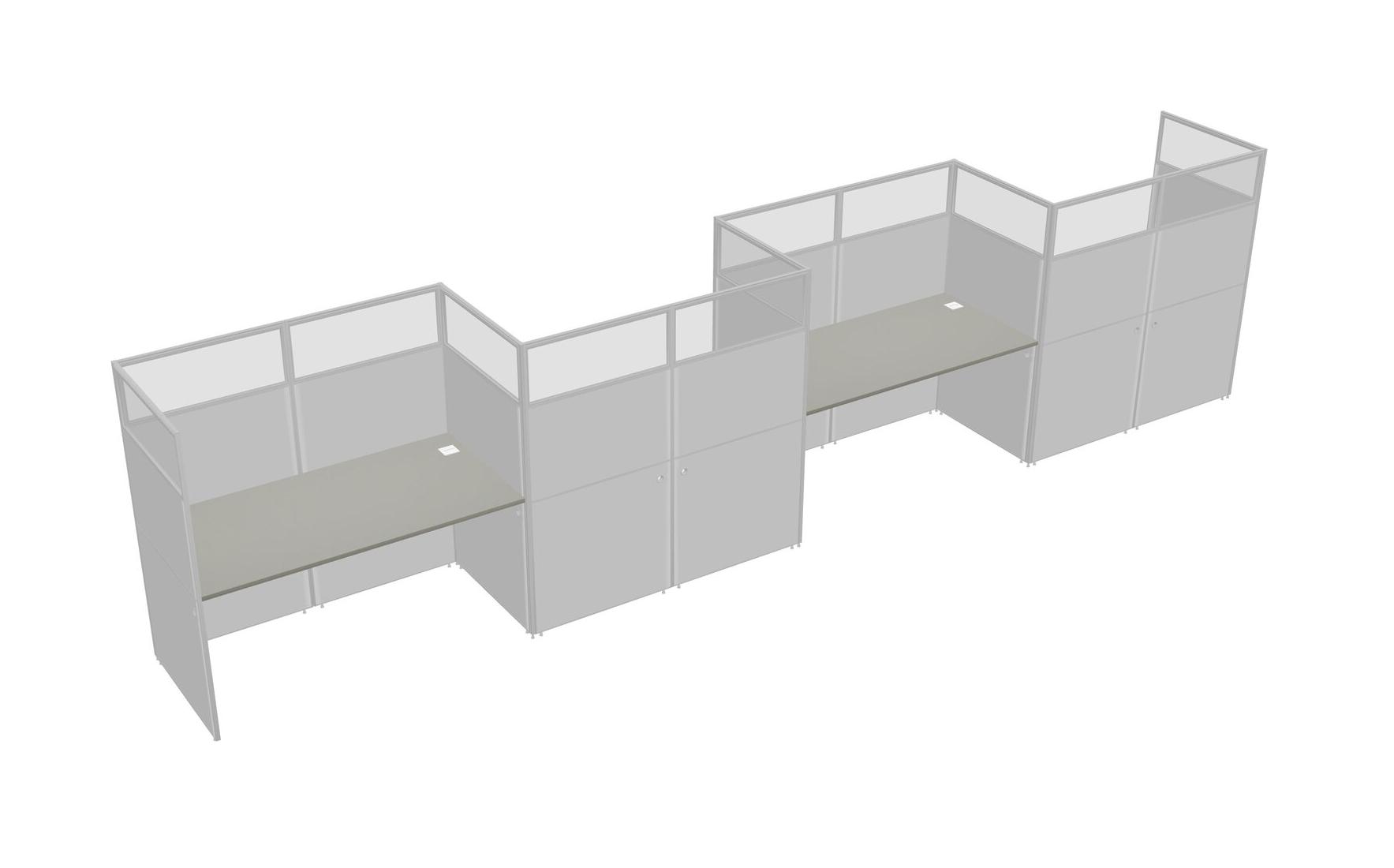 Grey Shadows Rectangular Cubicle Workstations For 4 - Zigzag Formation