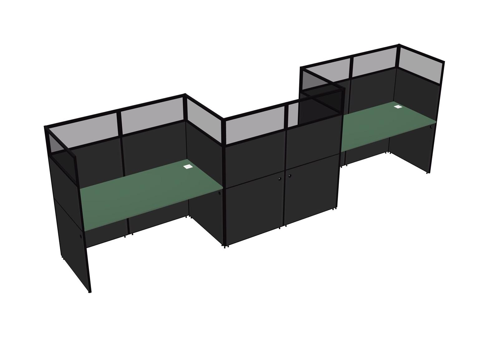 Green Rectangular Cubicle Workstations For 3 - Zigzag Formation