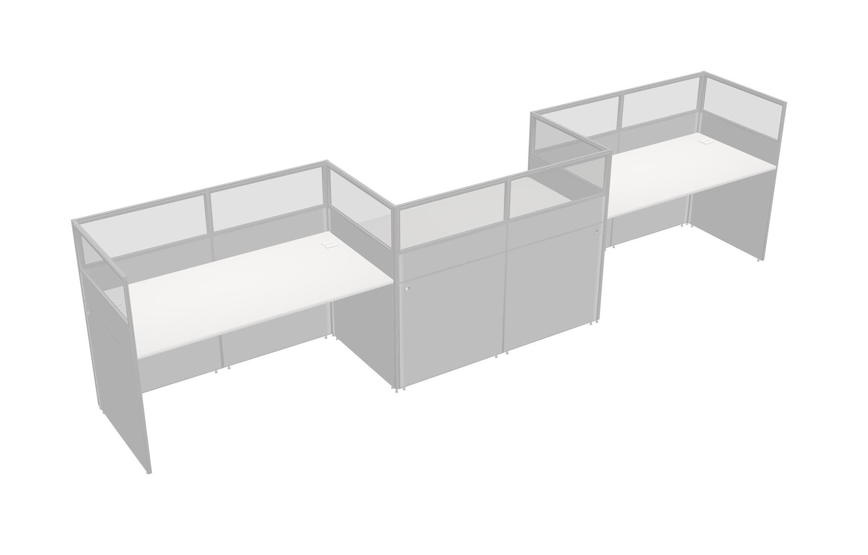 White Rectangular Cubicle Workstations For 3 - Zigzag Formation