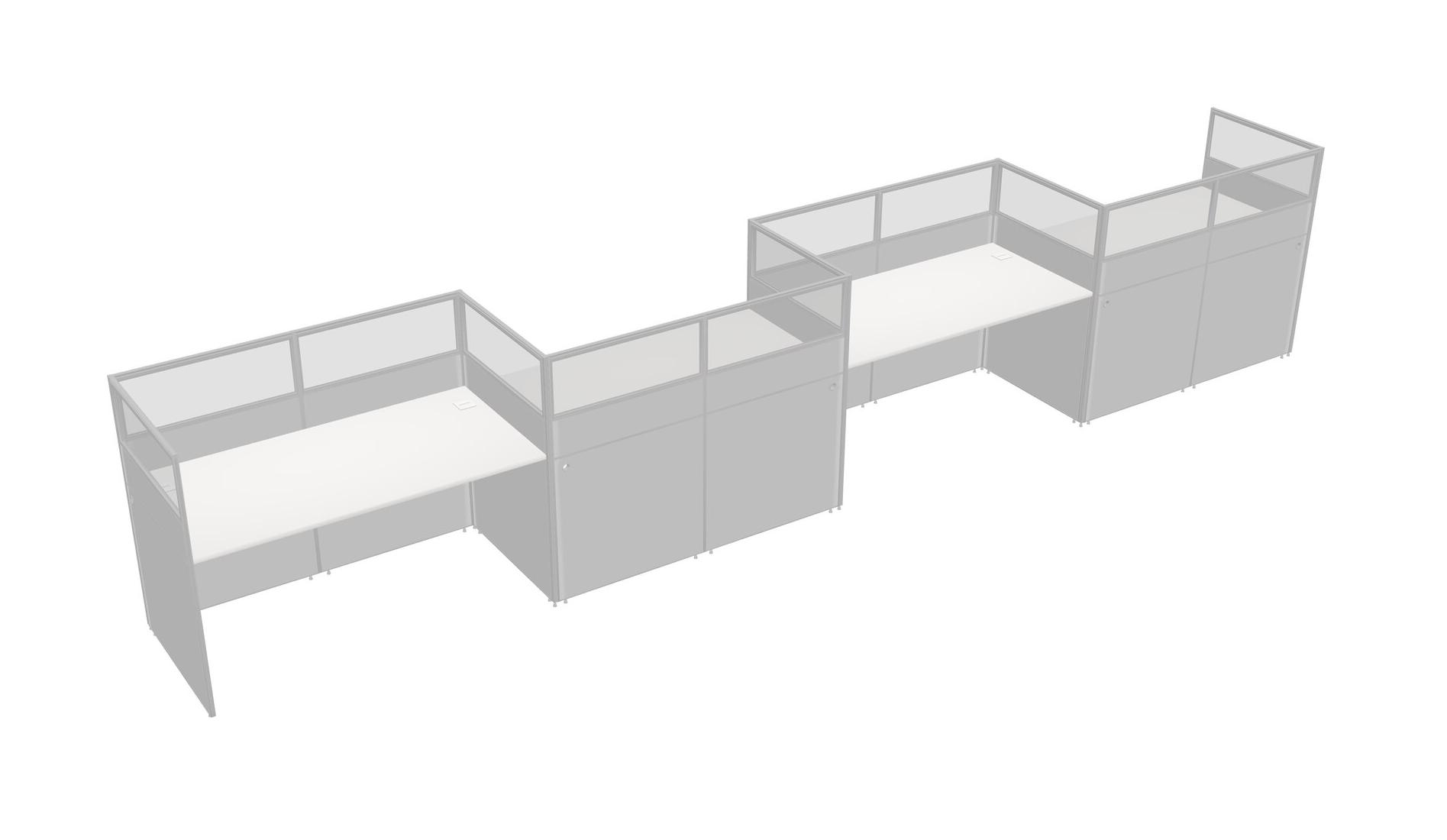 White Rectangular Cubicle Workstations For 4 - Zigzag Formation