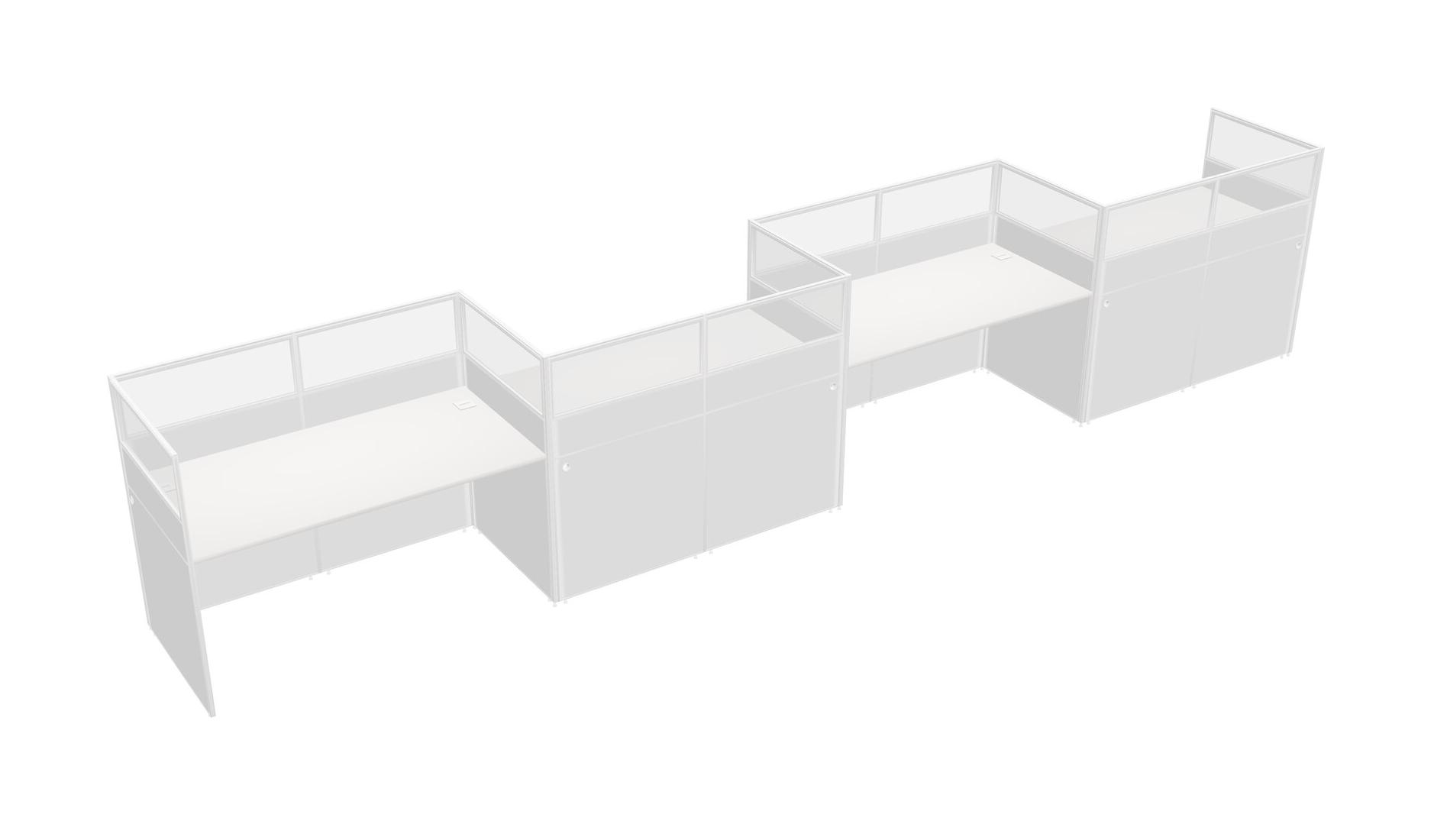 White Rectangular Cubicle Workstations For 4 - Zigzag Formation