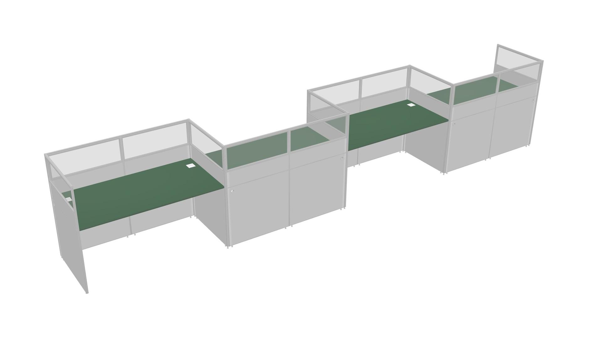 Green Rectangular Cubicle Workstations For 4 - Zigzag Formation