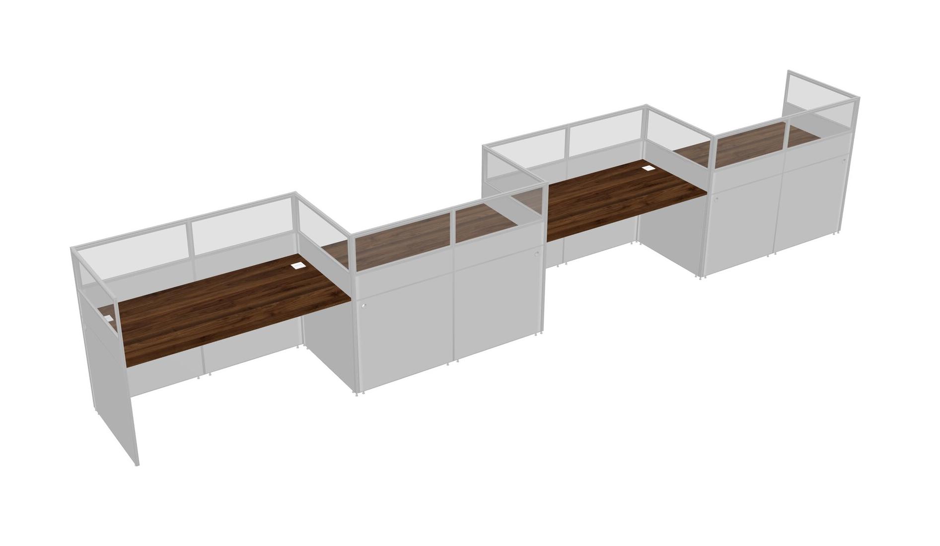 Columbia Walnut Rectangular Cubicle Workstations For 4 - Zigzag Formation
