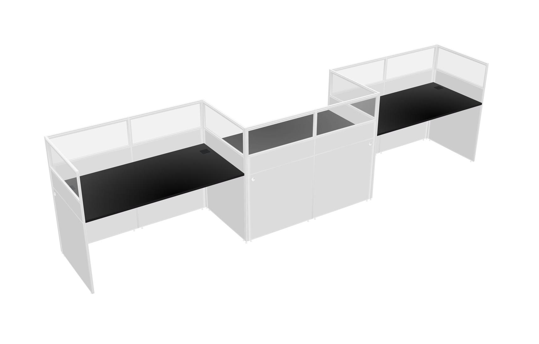 Black Rectangular Cubicle Workstations For 3 - Zigzag Formation
