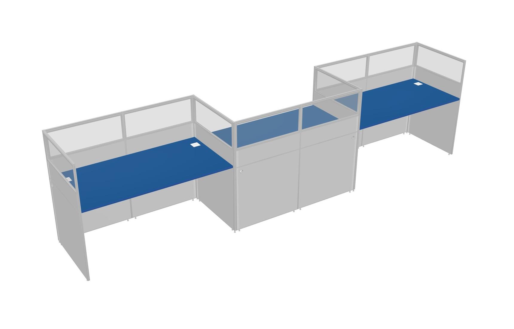 Prism Blue Rectangular Cubicle Workstations For 3 - Zigzag Formation
