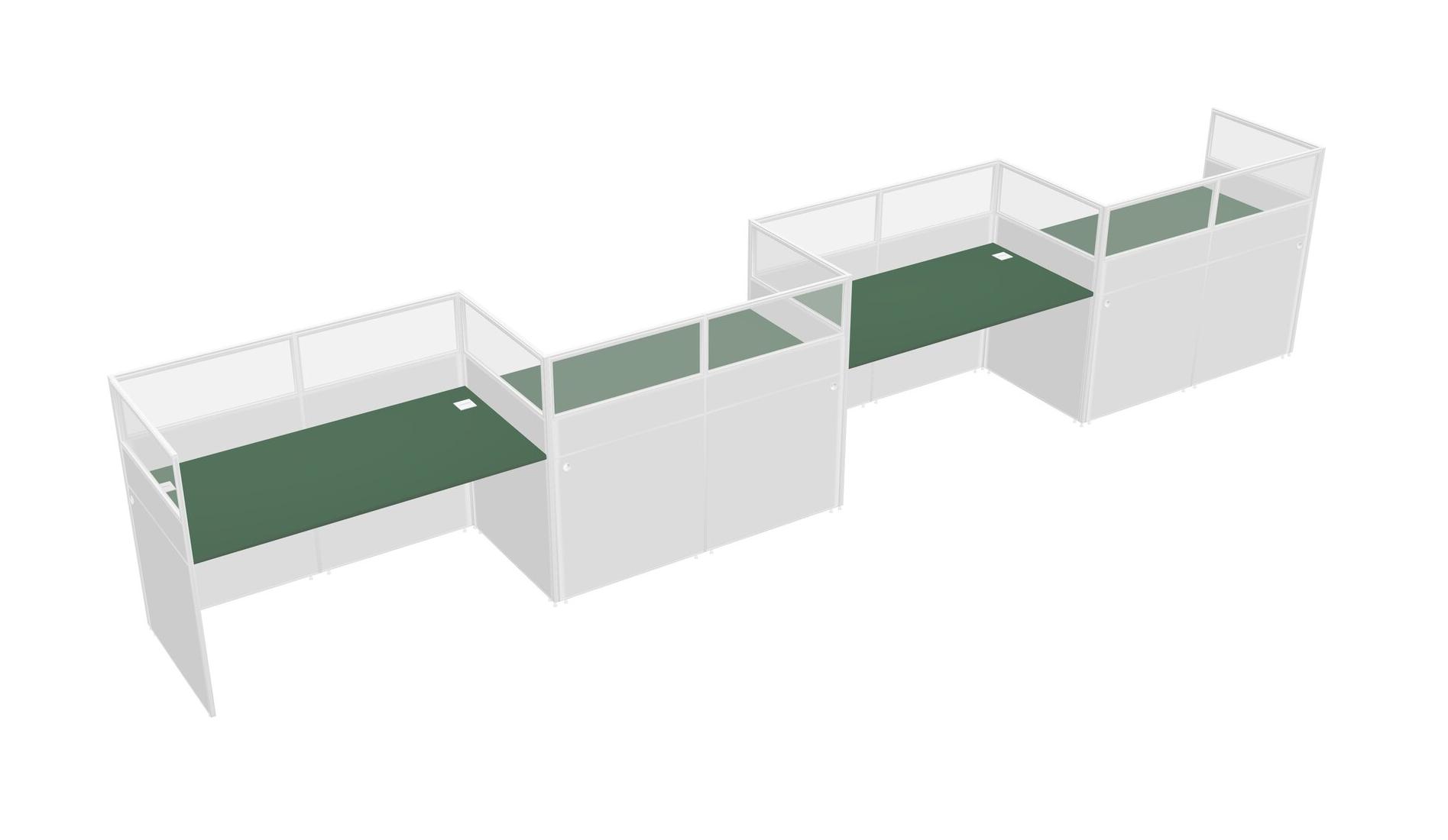 Green Rectangular Cubicle Workstations For 4 - Zigzag Formation