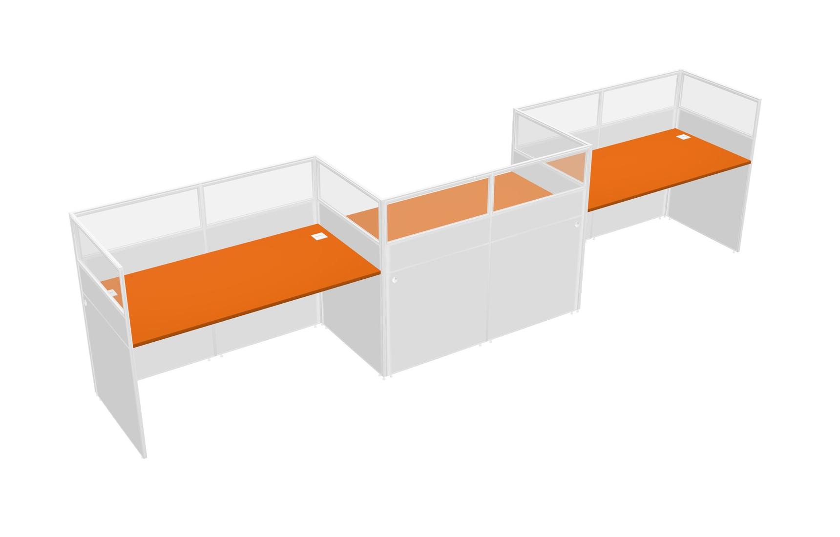 Orange Rectangular Cubicle Workstations For 3 - Zigzag Formation