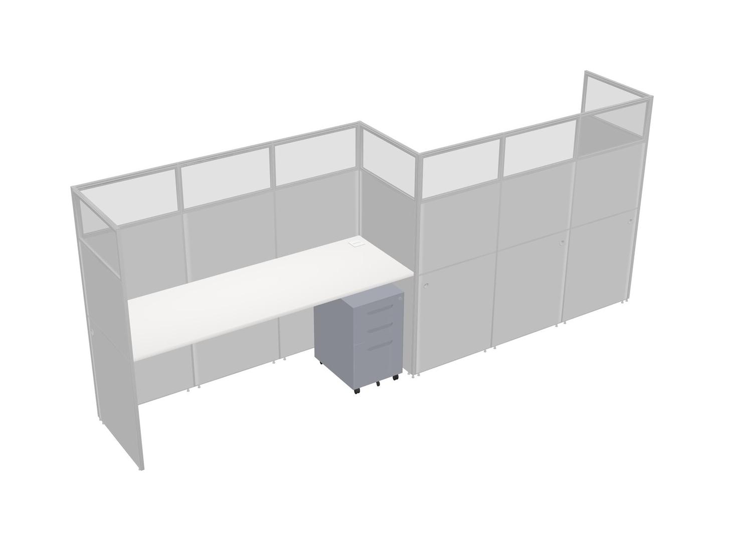 White Rectangular Cubicle Workstations For 2 - Zigzag Formation + Grey Metal Mobile Drawers