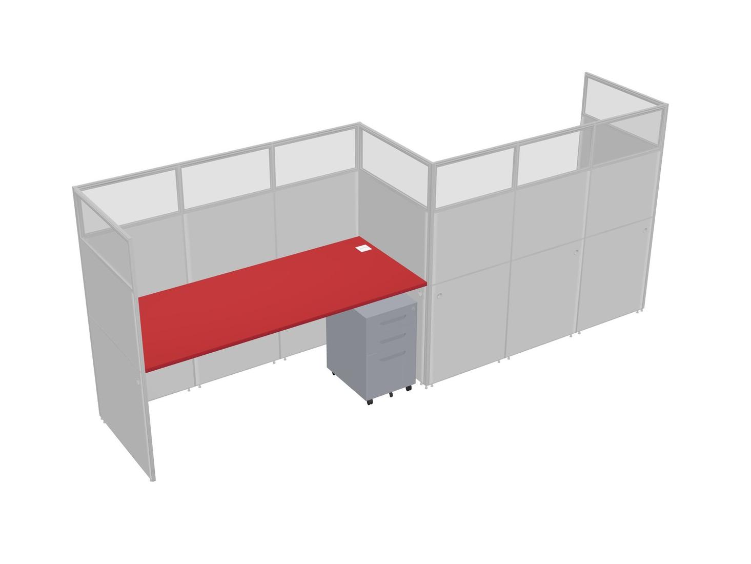 Prism Red Rectangular Cubicle Workstations For 2 - Zigzag Formation + Grey Metal Mobile Drawers