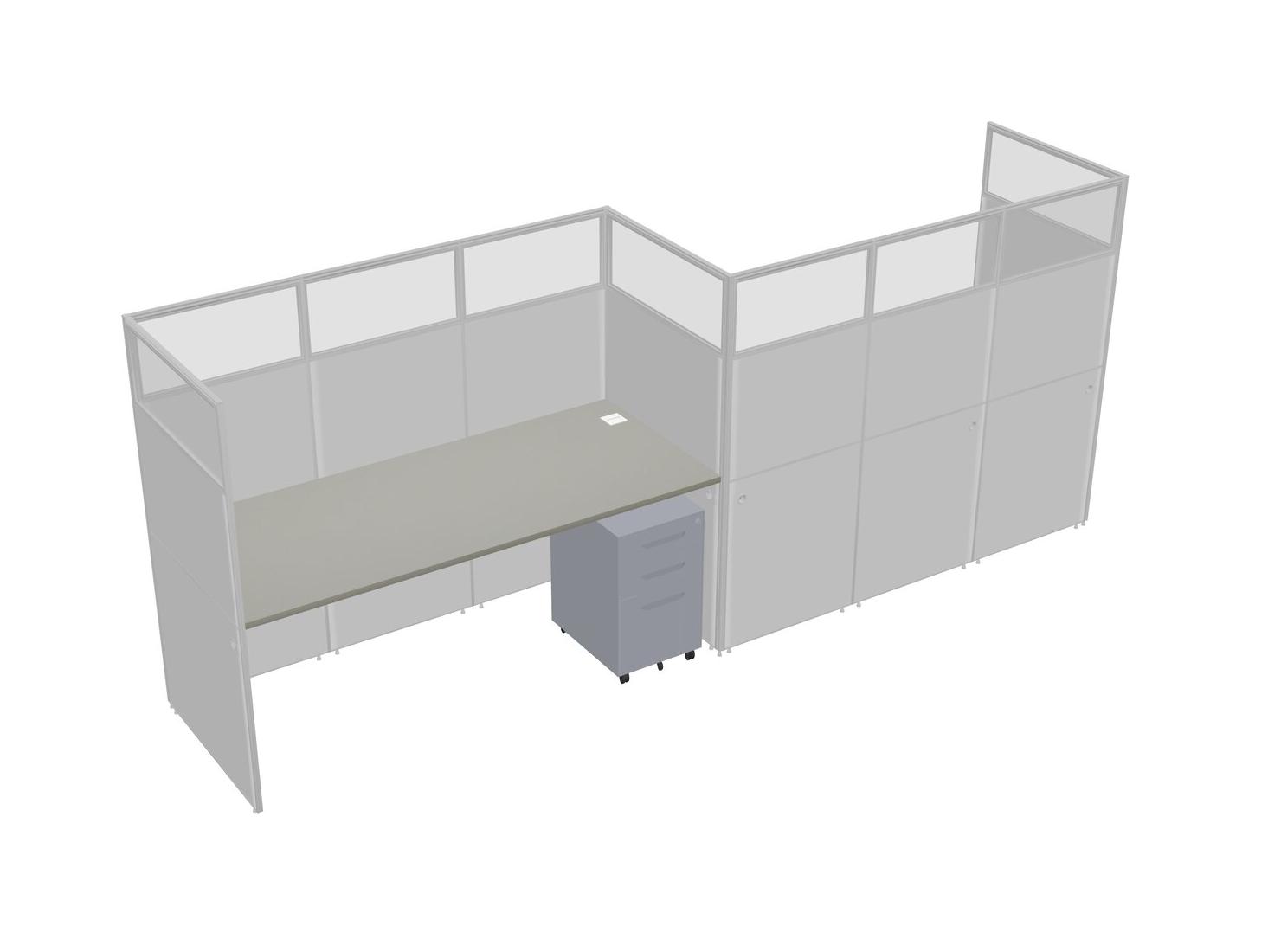 Grey Shadows Rectangular Cubicle Workstations For 2 - Zigzag Formation + Grey Metal Mobile Drawers