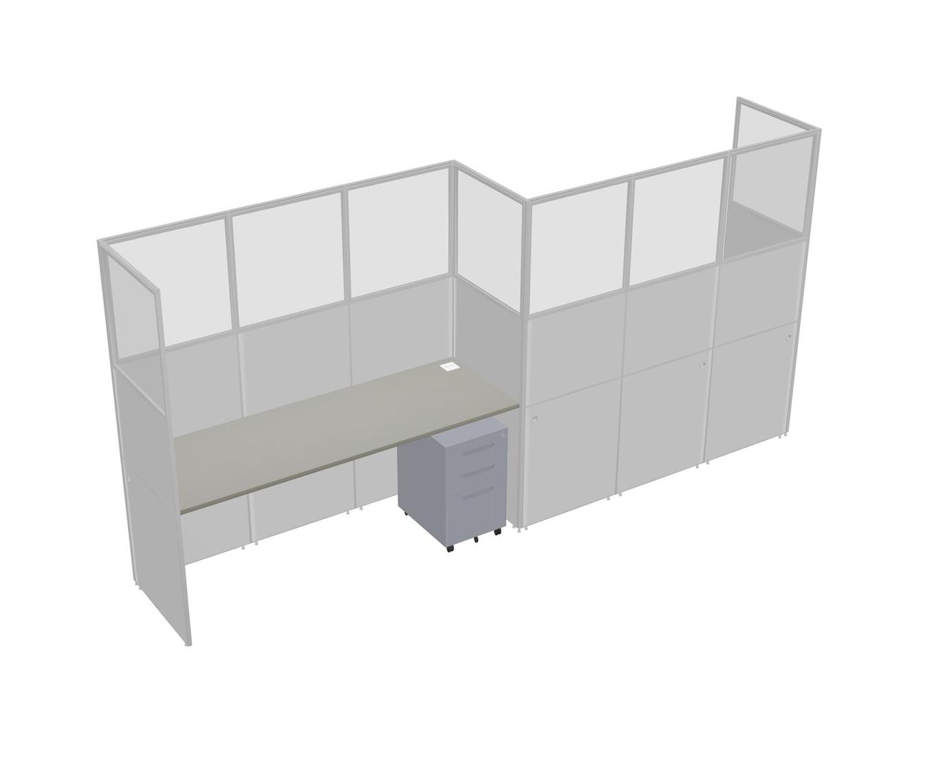 Grey Shadows Rectangular Cubicle Workstations For 2 - Zigzag Formation + Grey Metal Mobile Drawers