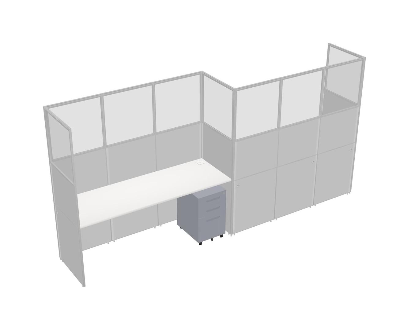 White Rectangular Cubicle Workstations For 2 - Zigzag Formation + Grey Metal Mobile Drawers