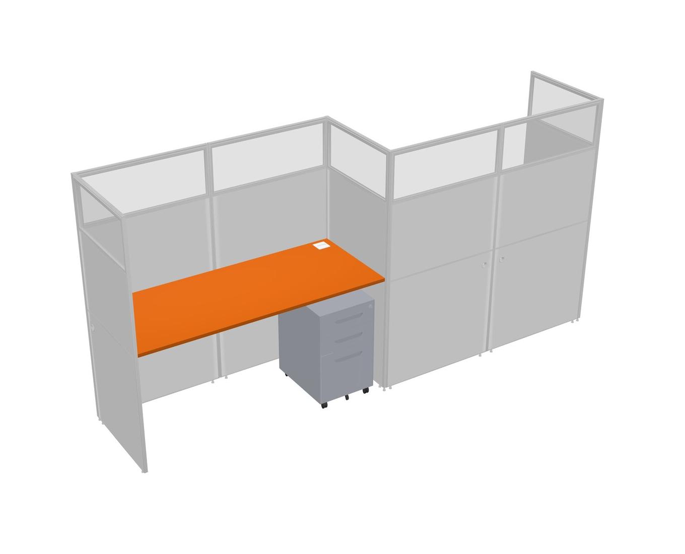 Orange Rectangular Cubicle Workstations For 2 - Zigzag Formation + Grey Metal Mobile Drawers