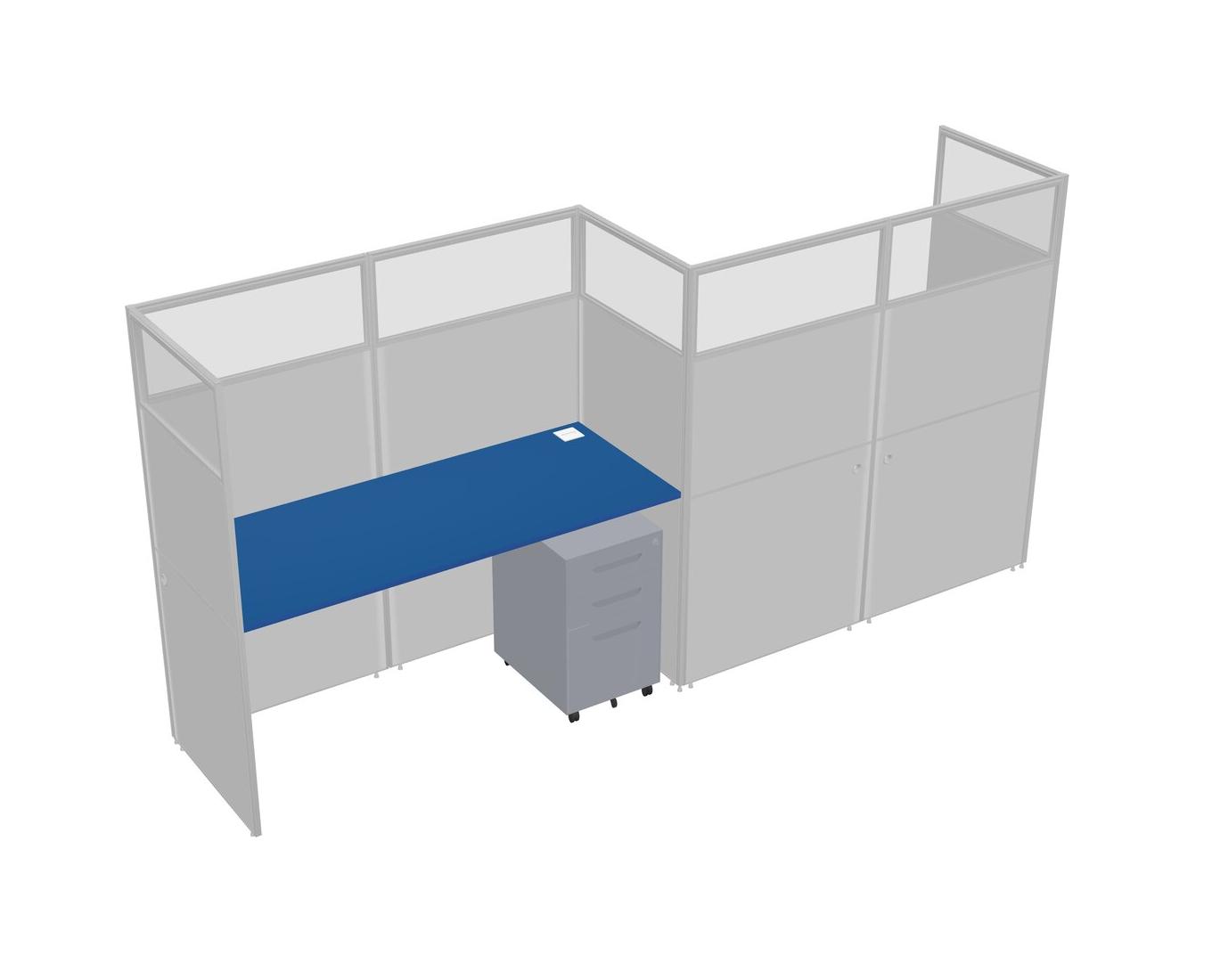 Prism Blue Rectangular Cubicle Workstations For 2 - Zigzag Formation + Grey Metal Mobile Drawers