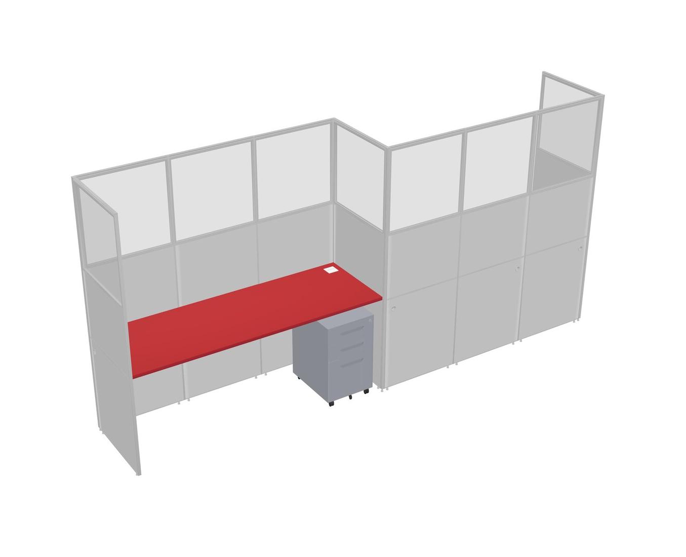 Prism Red Rectangular Cubicle Workstations For 2 - Zigzag Formation + Grey Metal Mobile Drawers