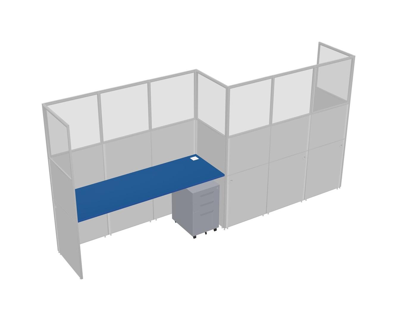 Prism Blue Rectangular Cubicle Workstations For 2 - Zigzag Formation + Grey Metal Mobile Drawers