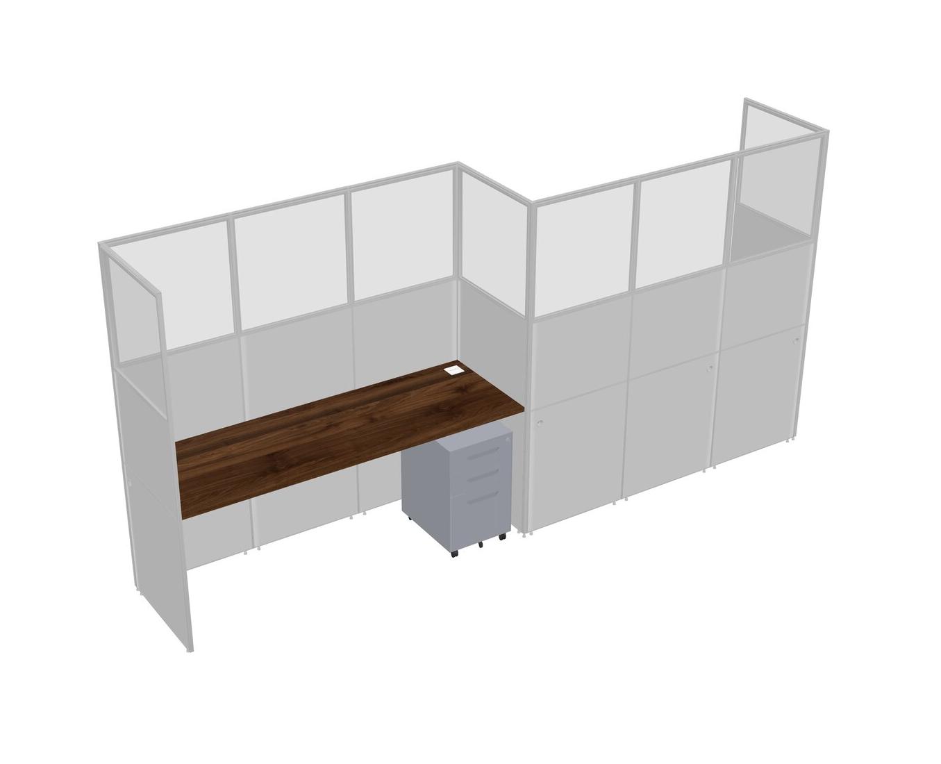 Columbia Walnut Rectangular Cubicle Workstations For 2 - Zigzag Formation + Grey Metal Mobile Drawers