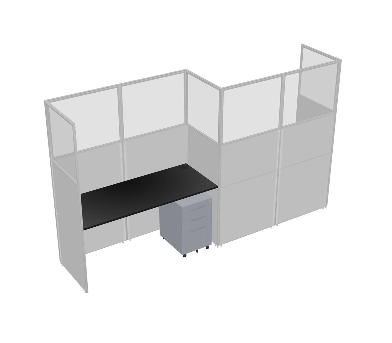 Black Rectangular Cubicle Workstations For 2 - Zigzag Formation + Grey Metal Mobile Drawers