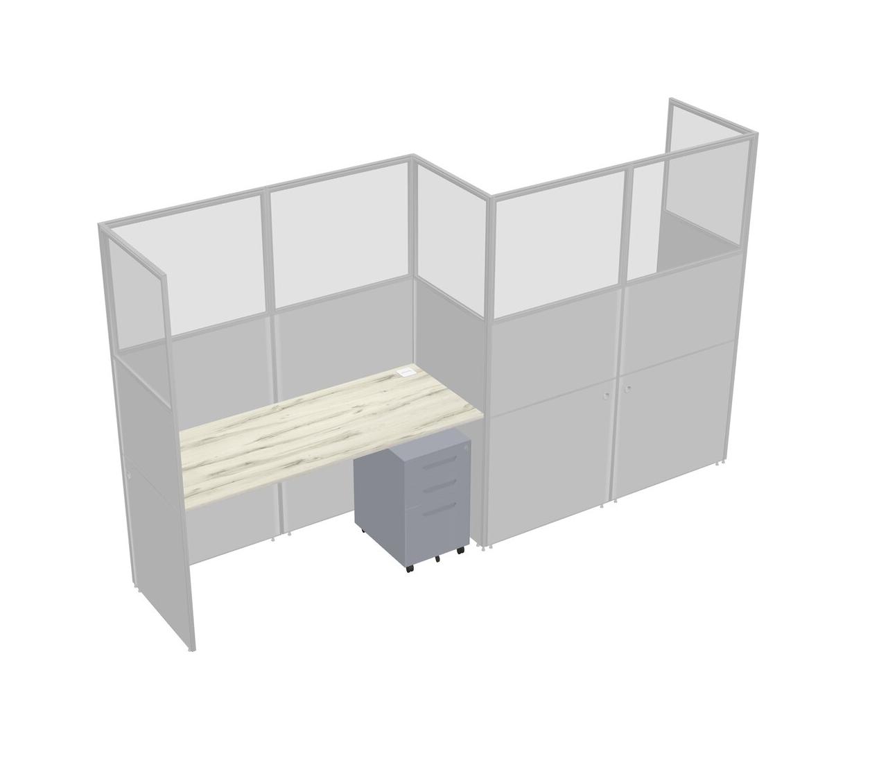 Heinne Holz Rectangular Cubicle Workstations For 2 - Zigzag Formation + Grey Metal Mobile Drawers