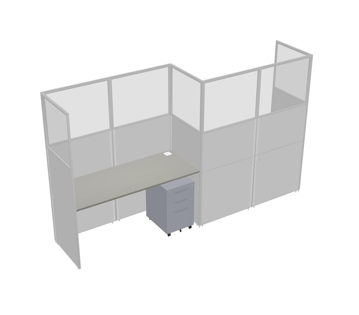 Grey Shadows Rectangular Cubicle Workstations For 2 - Zigzag Formation + Grey Metal Mobile Drawers