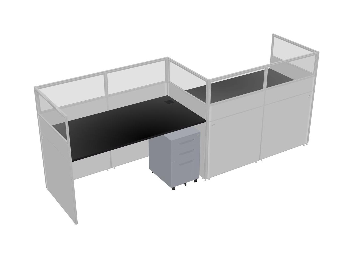 Black Rectangular Cubicle Workstations For 2 - Zigzag Formation + Grey Metal Mobile Drawers