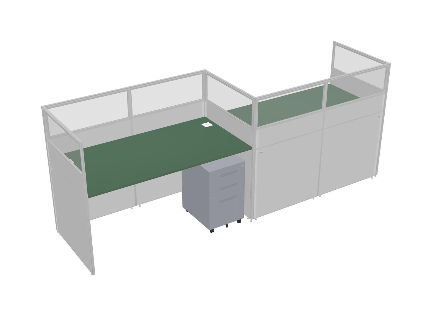 Green Rectangular Cubicle Workstations For 2 - Zigzag Formation + Grey Metal Mobile Drawers
