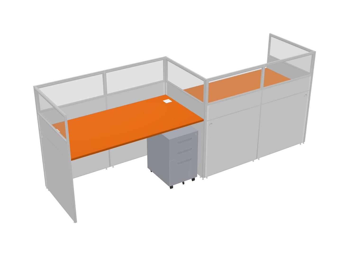 Orange Rectangular Cubicle Workstations For 2 - Zigzag Formation + Grey Metal Mobile Drawers