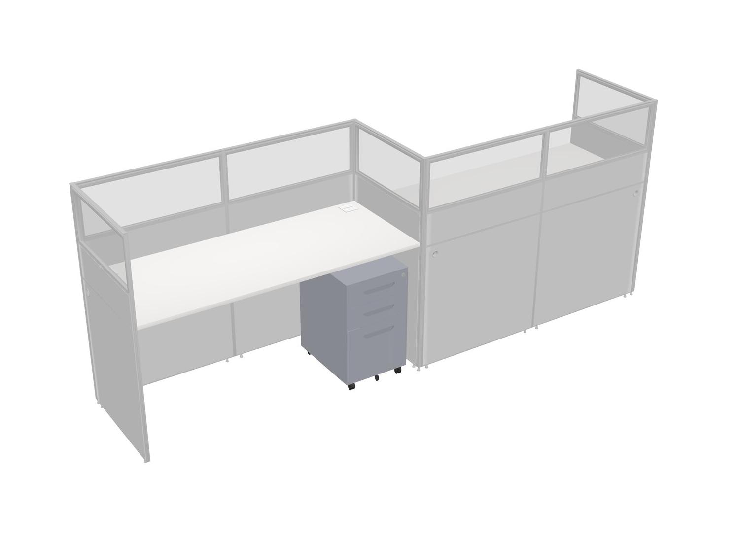 White Rectangular Cubicle Workstations For 2 - Zigzag Formation + Grey Metal Mobile Drawers