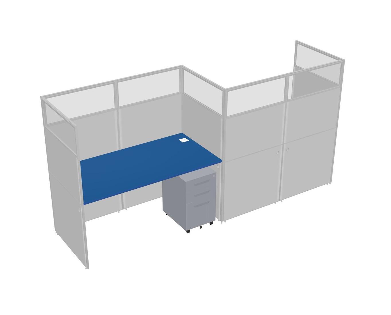 Prism Blue Rectangular Cubicle Workstations For 2 - Zigzag Formation + Grey Metal Mobile Drawers