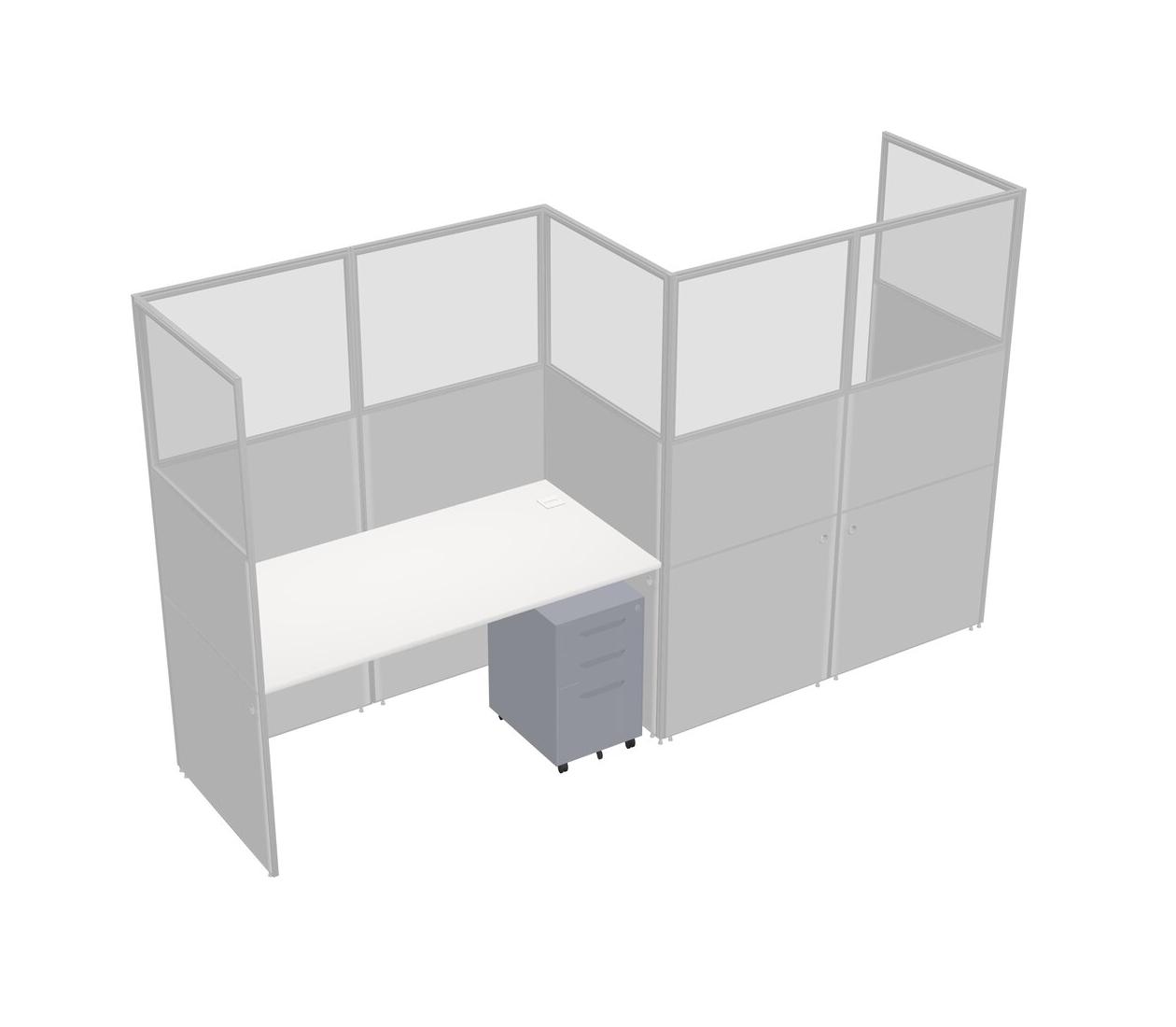 White Rectangular Cubicle Workstations For 2 - Zigzag Formation + Grey Metal Mobile Drawers