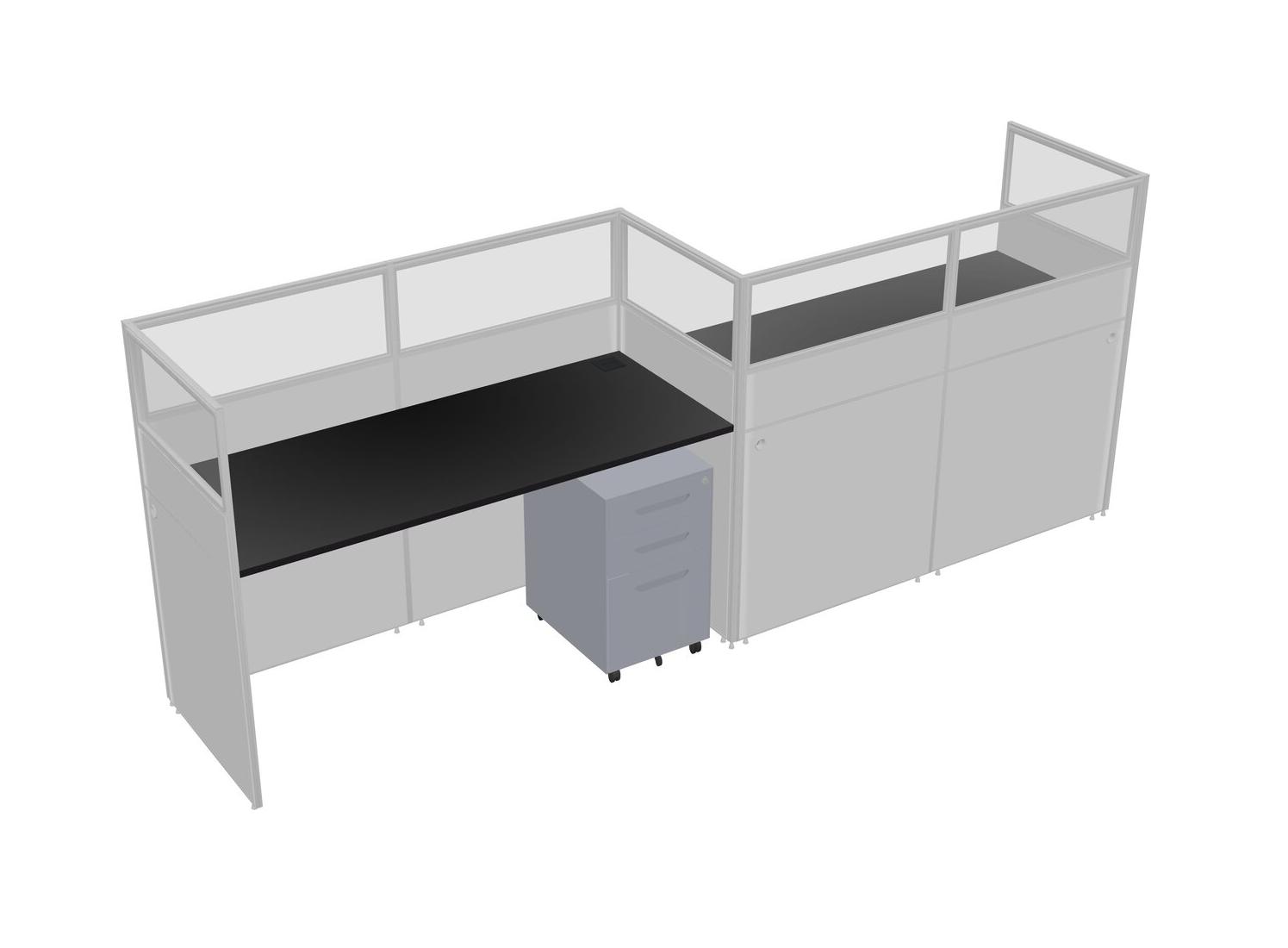 Black Rectangular Cubicle Workstations For 2 - Zigzag Formation + Grey Metal Mobile Drawers