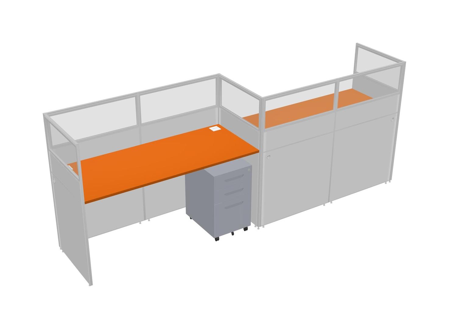 Orange Rectangular Cubicle Workstations For 2 - Zigzag Formation + Grey Metal Mobile Drawers