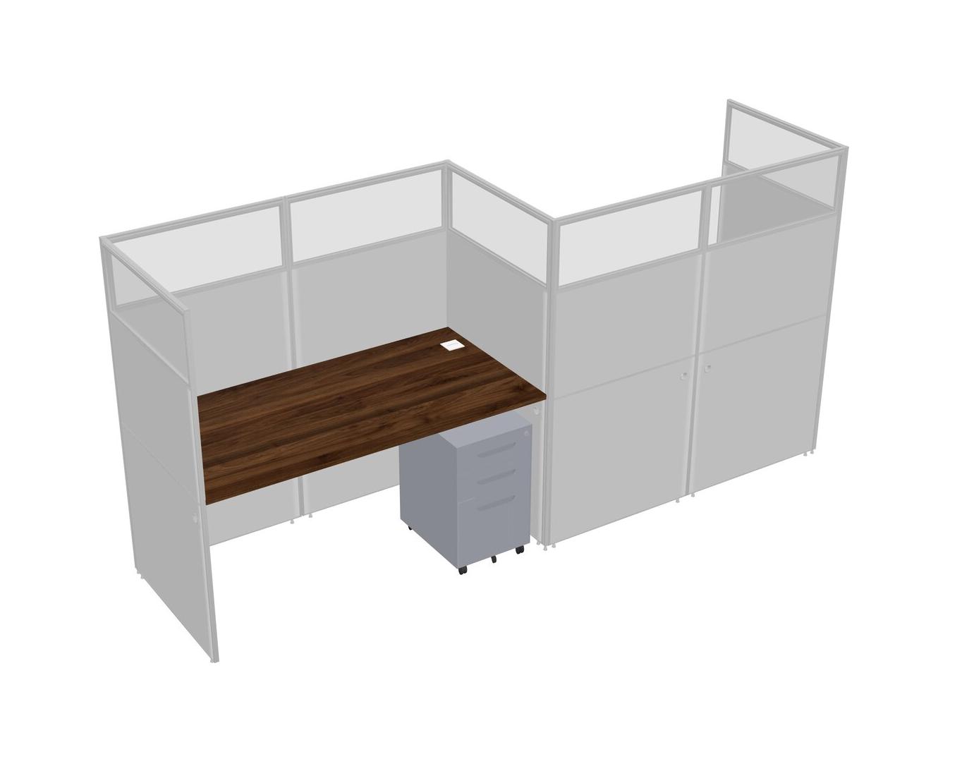 Columbia Walnut Rectangular Cubicle Workstations For 2 - Zigzag Formation + Grey Metal Mobile Drawers
