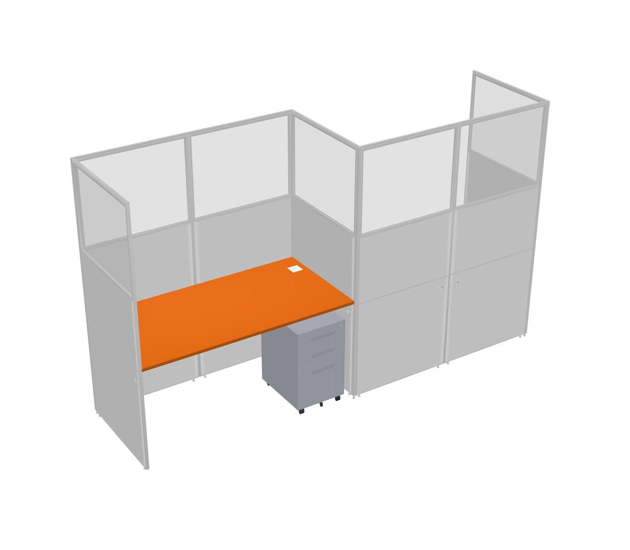 Orange Rectangular Cubicle Workstations For 2 - Zigzag Formation + Grey Metal Mobile Drawers