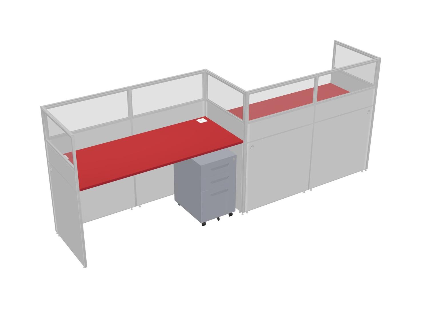 Prism Red Rectangular Cubicle Workstations For 2 - Zigzag Formation + Grey Metal Mobile Drawers