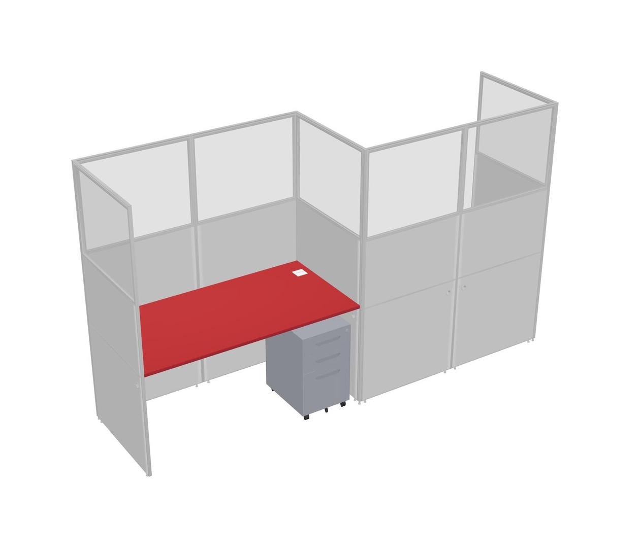 Prism Red Rectangular Cubicle Workstations For 2 - Zigzag Formation + Grey Metal Mobile Drawers