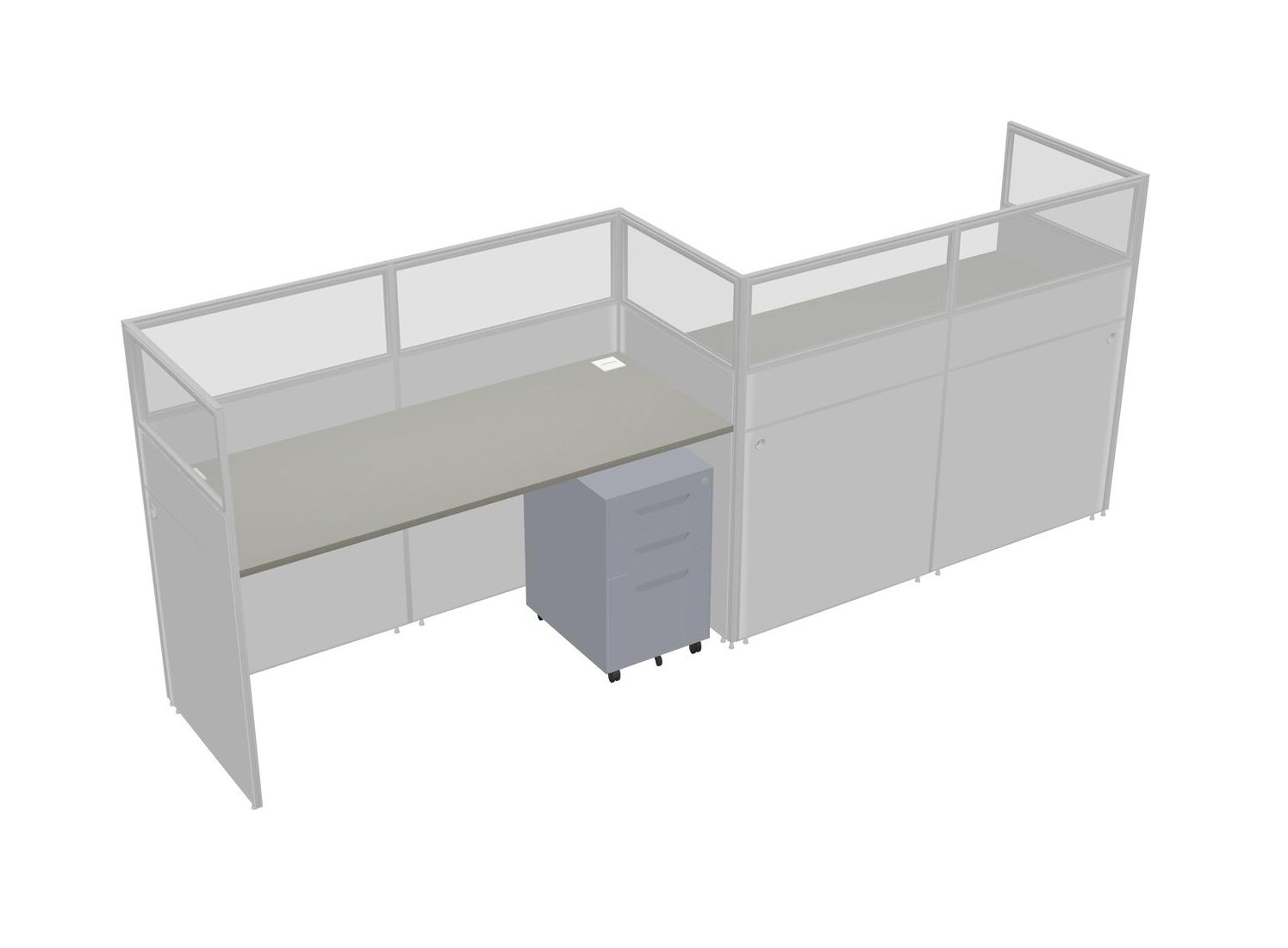Grey Shadows Rectangular Cubicle Workstations For 2 - Zigzag Formation + Grey Metal Mobile Drawers