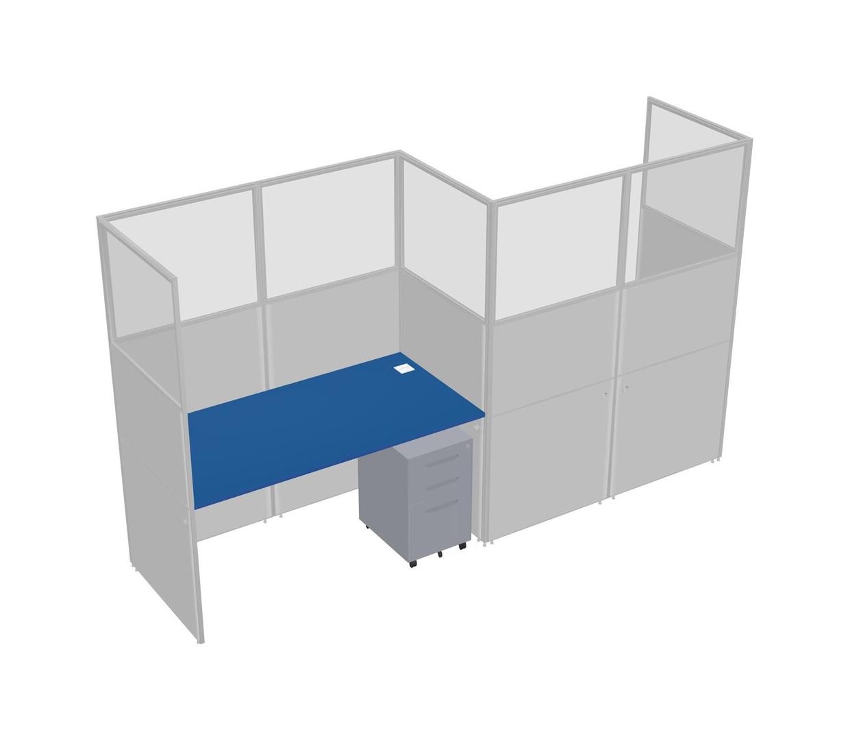 Prism Blue Rectangular Cubicle Workstations For 2 - Zigzag Formation + Grey Metal Mobile Drawers