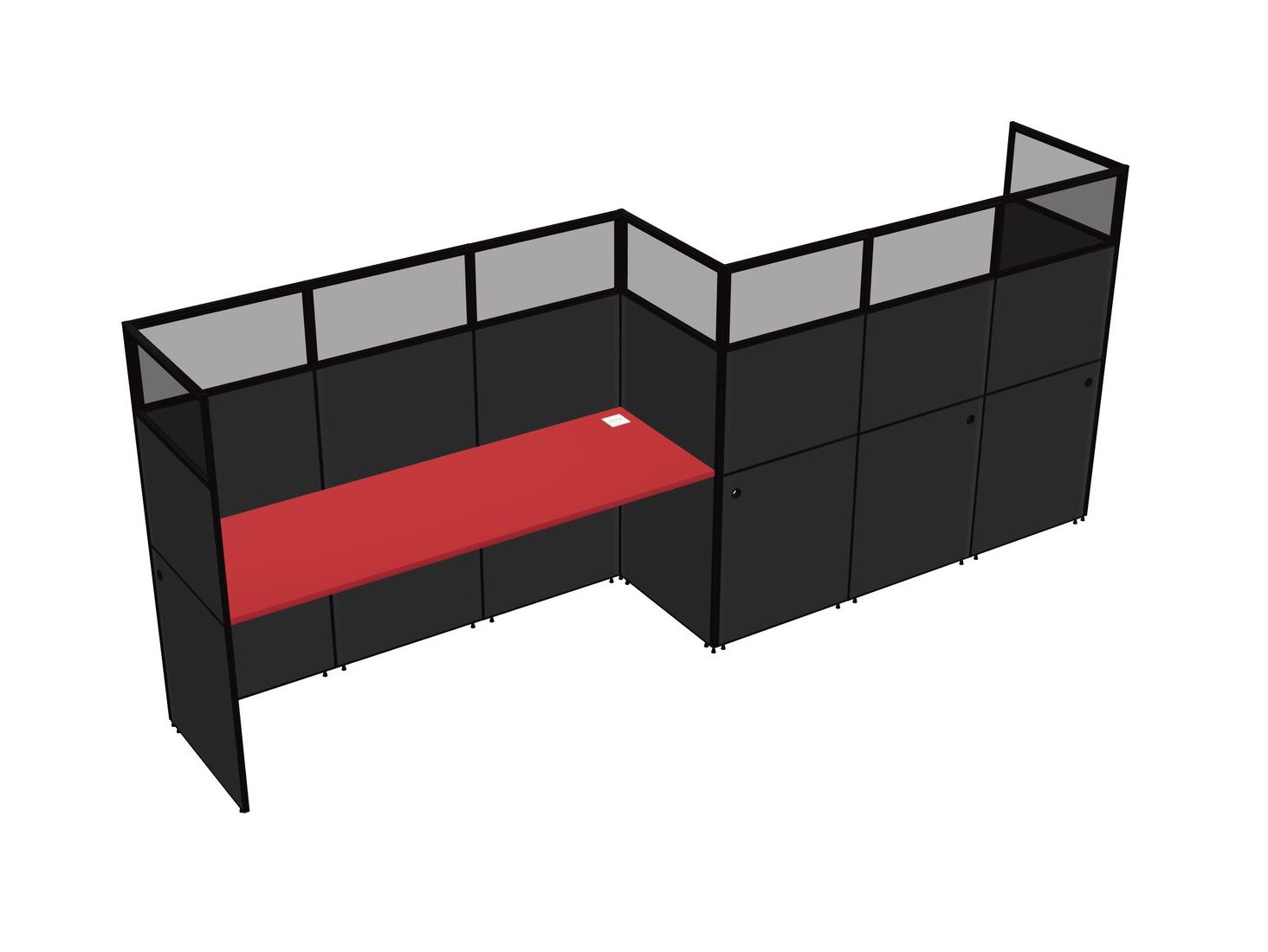 Prism Red Rectangular Cubicle Workstations For 2 - Zigzag Formation