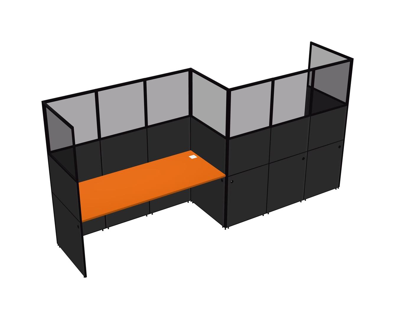 Orange Rectangular Cubicle Workstations For 2 - Zigzag Formation