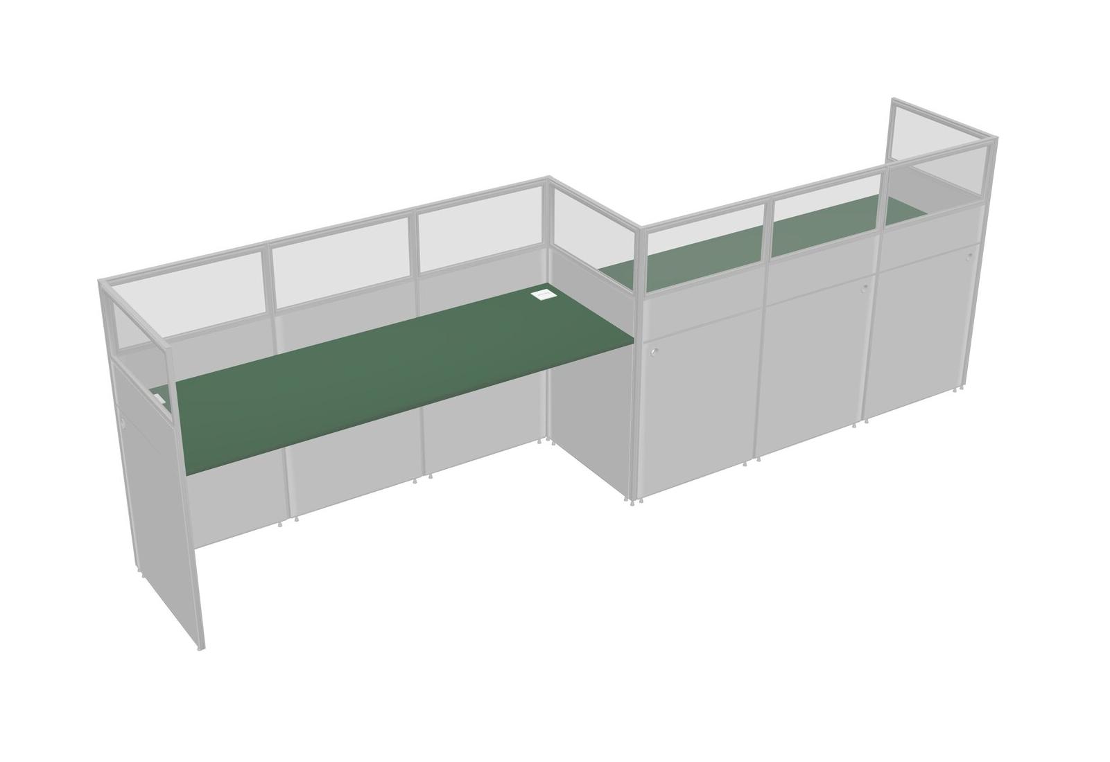 Green Rectangular Cubicle Workstations For 2 - Zigzag Formation