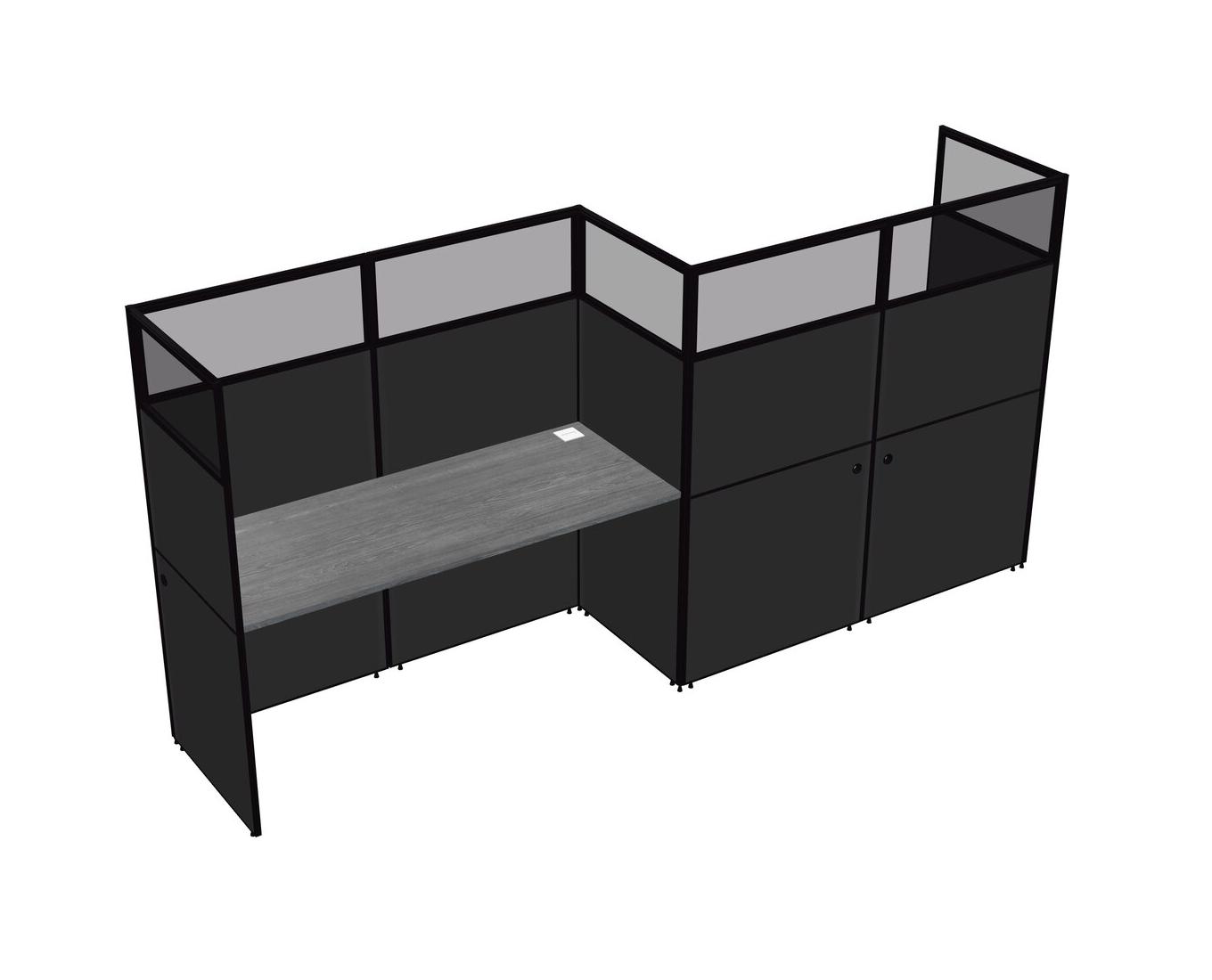 Grey Rectangular Cubicle Workstations For 2 - Zigzag Formation