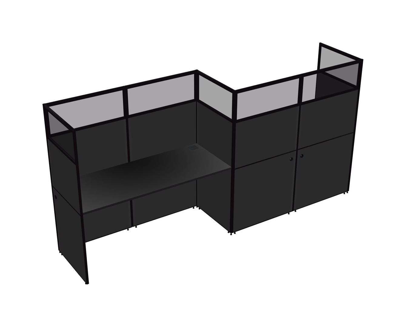 Black Rectangular Cubicle Workstations For 2 - Zigzag Formation