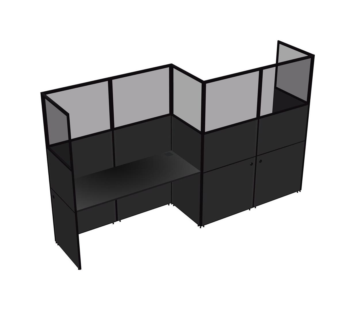 Black Rectangular Cubicle Workstations For 2 - Zigzag Formation