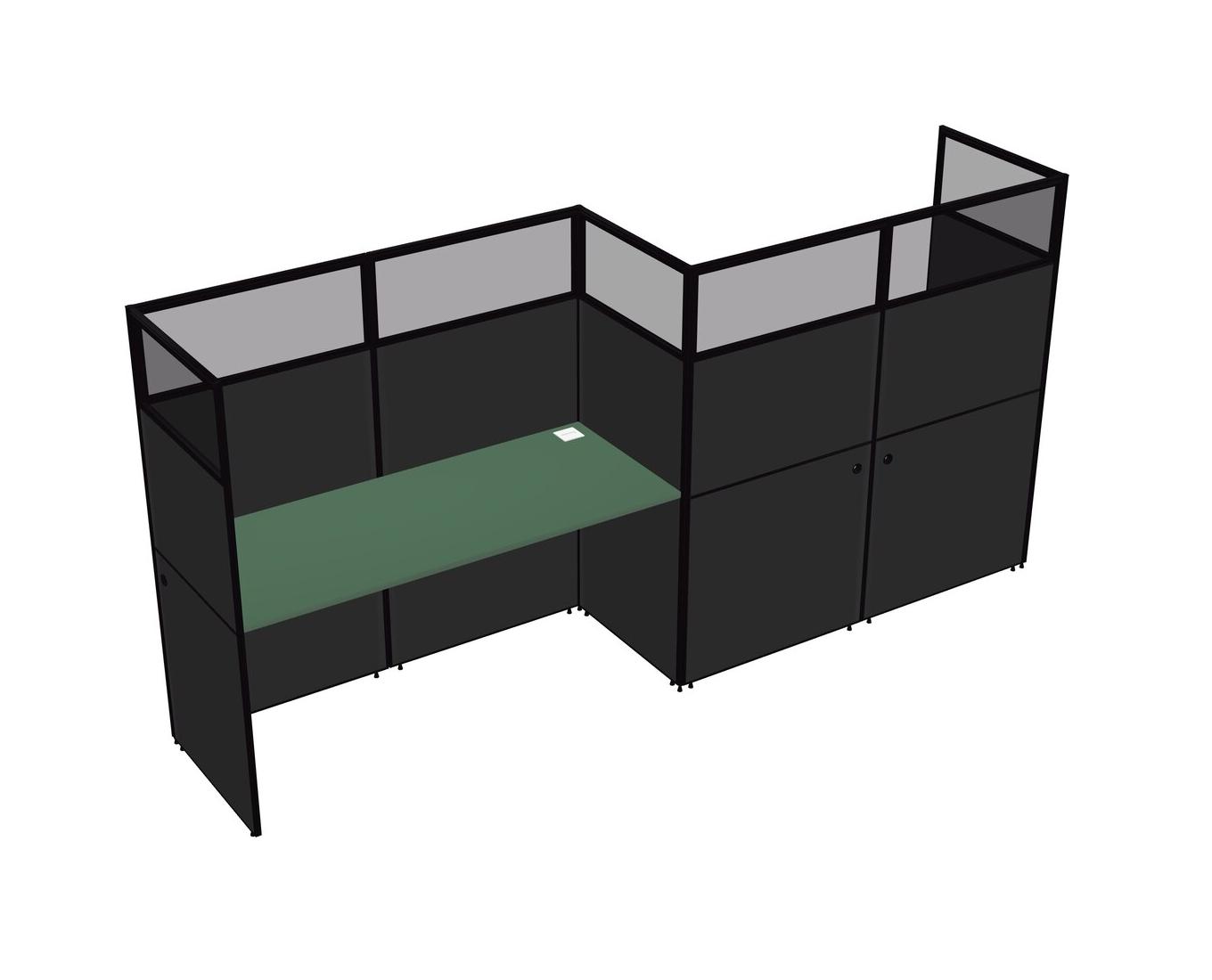 Green Rectangular Cubicle Workstations For 2 - Zigzag Formation