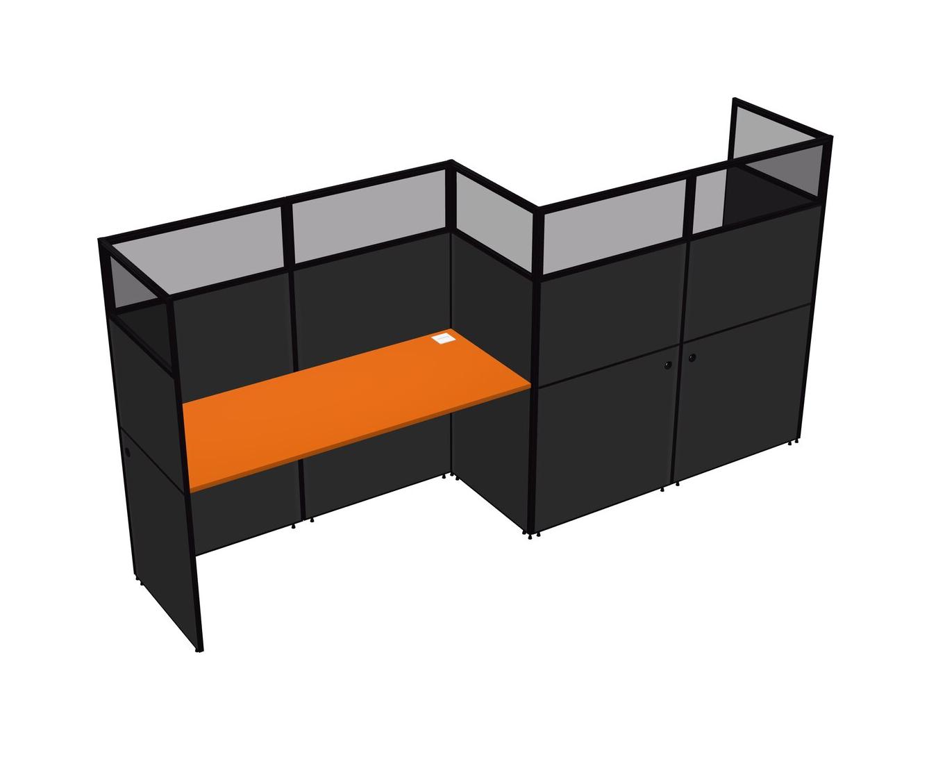 Orange Rectangular Cubicle Workstations For 2 - Zigzag Formation