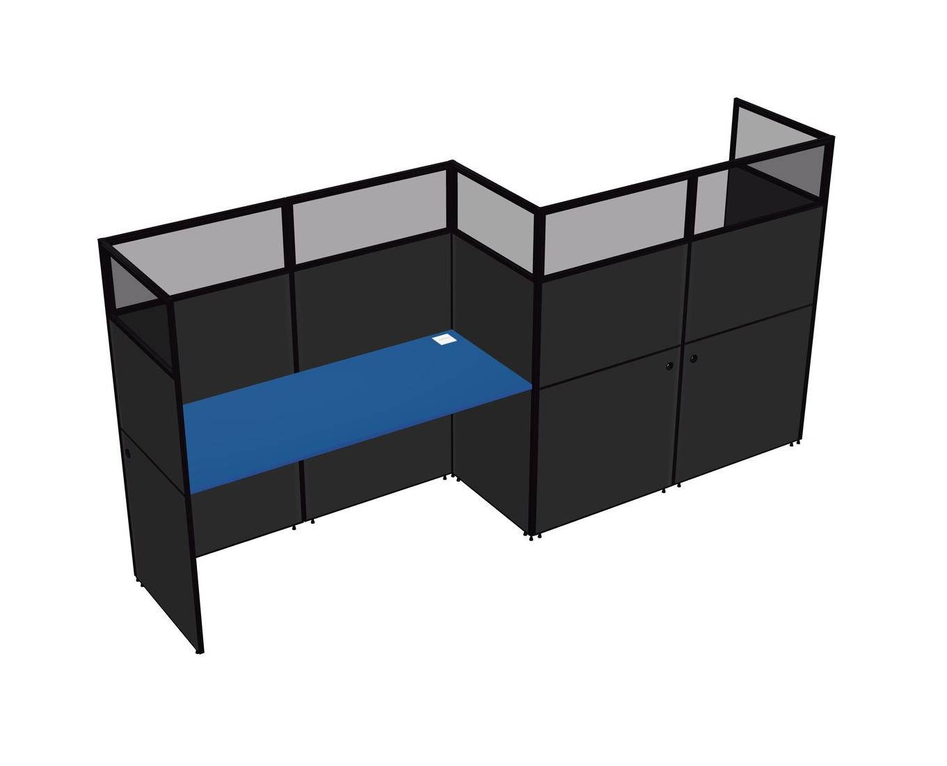 Prism Blue Rectangular Cubicle Workstations For 2 - Zigzag Formation